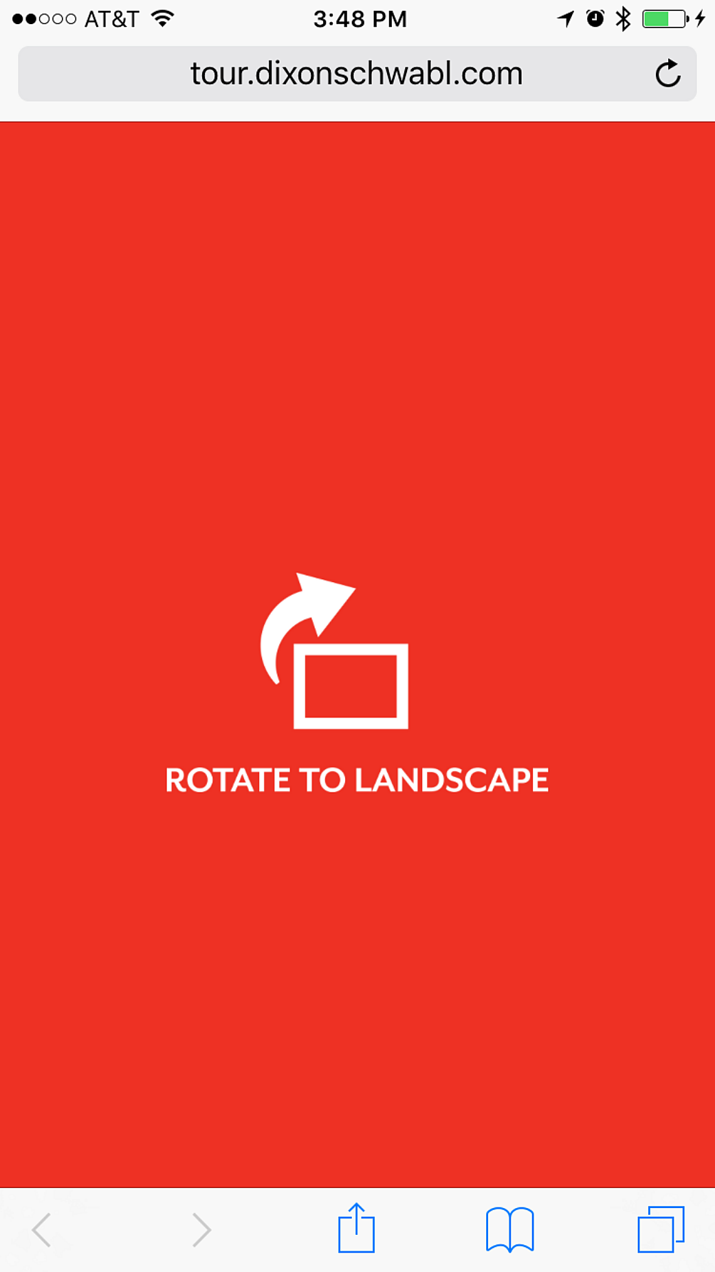 The 3D tour page was meant to be played inside a QR code reader app on iOS and Android devices. As we were walking around the agency asking people to pull up the website on their mobile phones we found that the page stuttered and it was almost unusable in portrait mode.