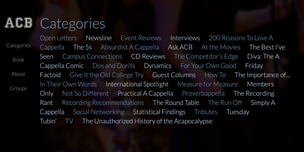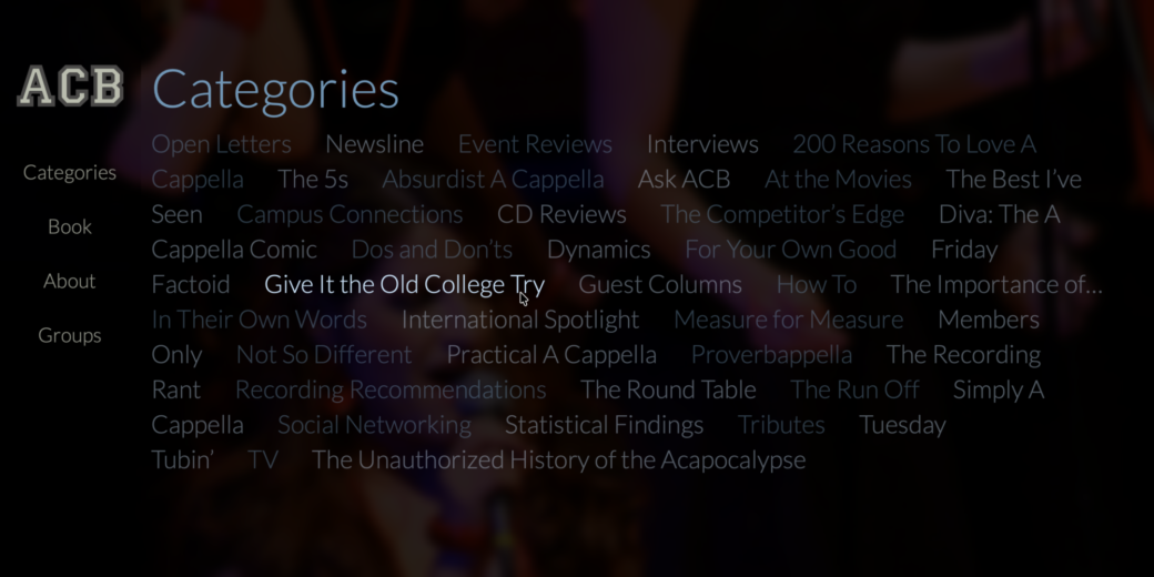 Finally, by 2013 we redesigned and re-developed the festival website as a fully responsive HTML/CSS website. While I don’t have a video of it in reach, one unique feature of the new site was that we had broken up the header image into layers and created a parallax animation for when you hovered over one of the main four buttons.
