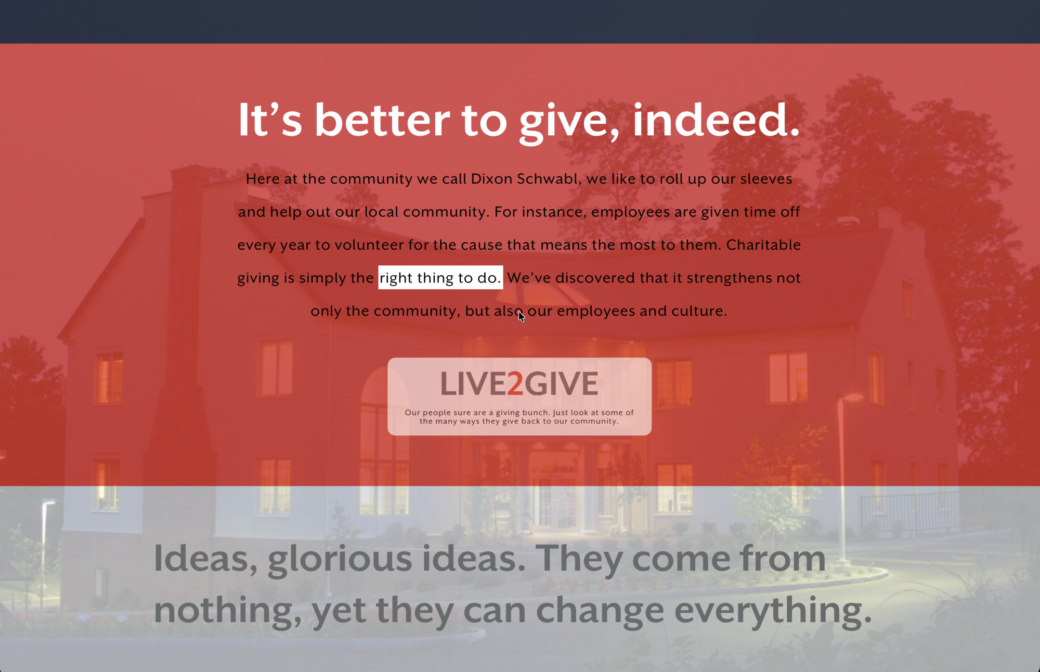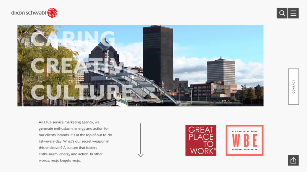 As a cap to my 14-year time at Dixon Schwabl one of the last projects I worked on was the most recent redesign of the website. Unfortunately, I didn’t take the time to grab screenshots of the website around its launch, but I have a behind-the-scenes video showing a dark mode switch and a little bit about what the homepage looked like as we got close to wrapping up development: