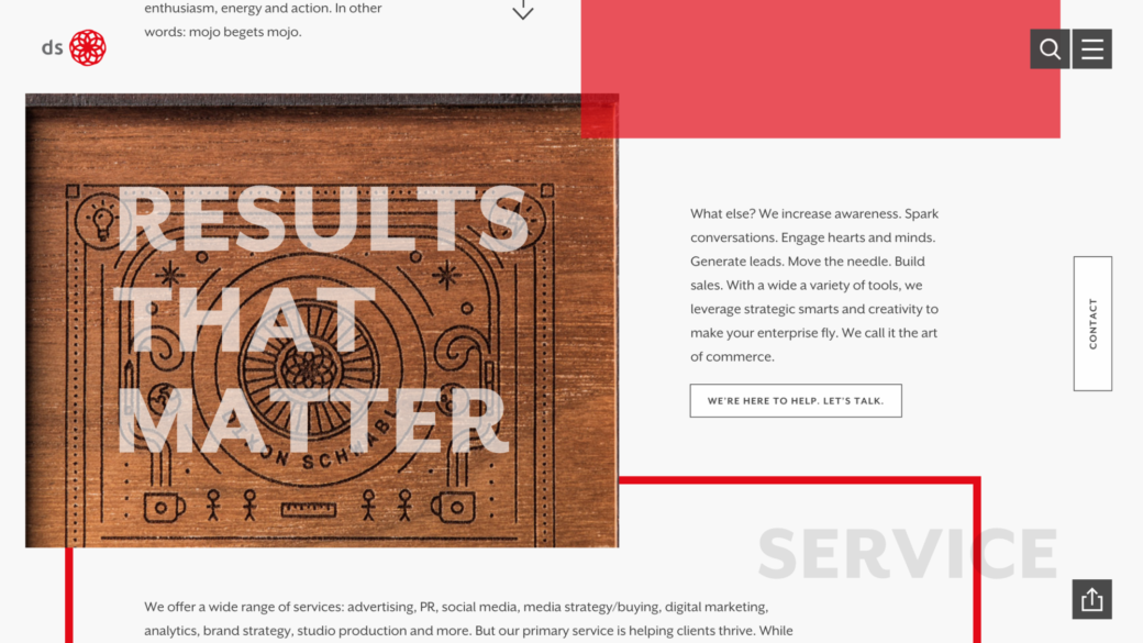 The DS website was always a place where I learned something new around web development. Our leadership were enthusiastically open to trying new ideas and using our site to wow our clients. When I think about these projects I appreciate how much we got to explore and learn, while getting support from some amazing designers and creative thinkers.