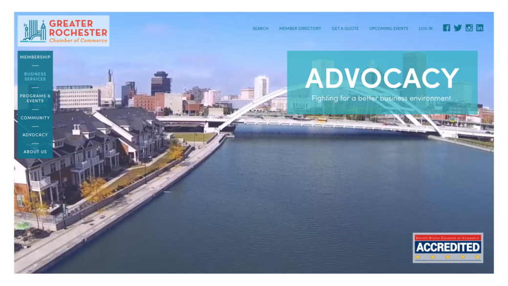 In 2016, Dixon Schwabl won the pitch to redesign and develop the website for the Greater Rochester Chamber of Commerce (GRCC) along with their logo and a few more brand assets.