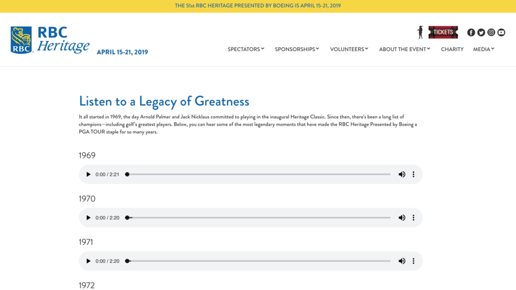In 2018, Dixon Schwabl’s social media and PR team was on fire. Their help promoting the RBC Heritage event earned us the opportunity to redesign the event website.