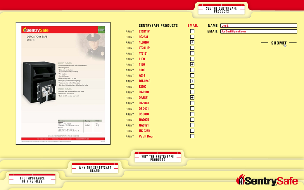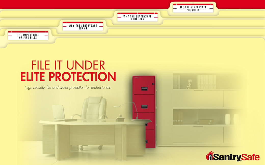 One of the first projects I worked on at Dixon Schwabl was to add a homepage animation and a video player to the SentrySafe corporate website. The homepage video was an animation that promoted their document safes that were pitched as being the ideal place to store electronic media (CDs, flash drives, etc).