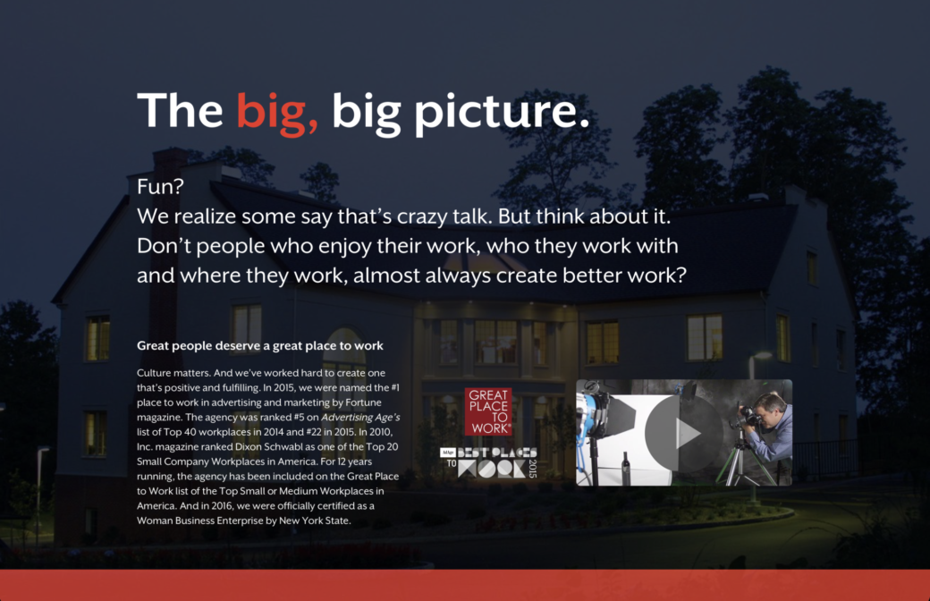 The redesigned site was mostly a facelift on top of the existing site. It was updated to reflect some of the changes that Dixon Schwabl made to evolve the brand.