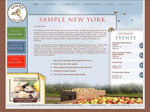 The Sample New York website was a way to promote New York agriculture and exports all year around. It pointed to events and places where you can experience what New York State had to offer.