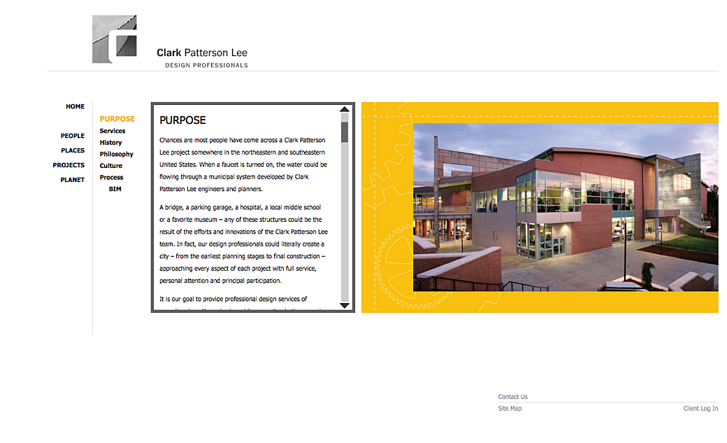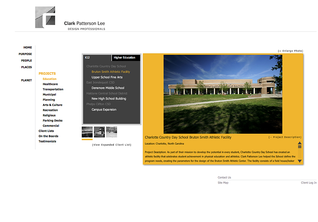 CPL was a website for a Rochester, NY-based architecture and planning firm. To be honest, I don’t remember who was the primary developer on this site, but I think it was my friend, Wayne Gormont, who did most of it. I remember sprinkling in little parts here and there where images faded from one color to grayscale or where an image gallery was needed.