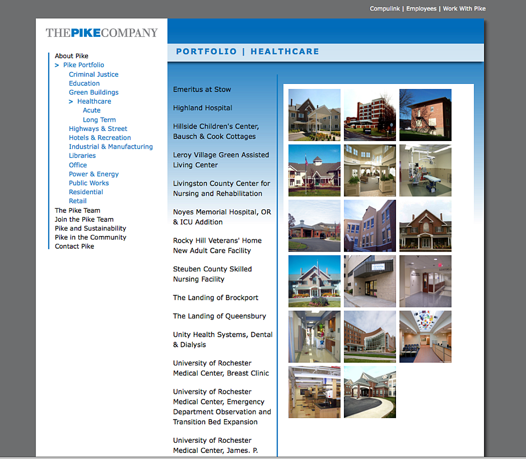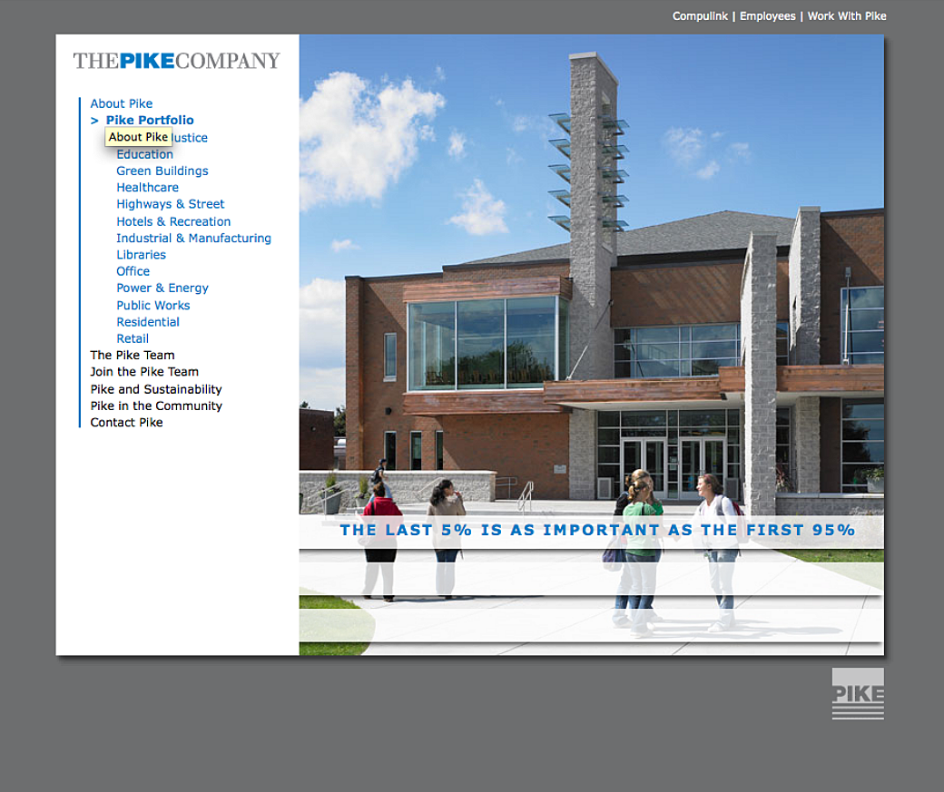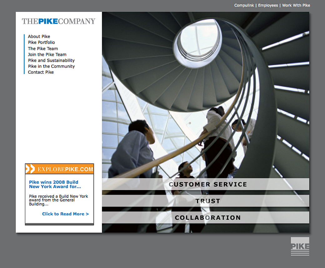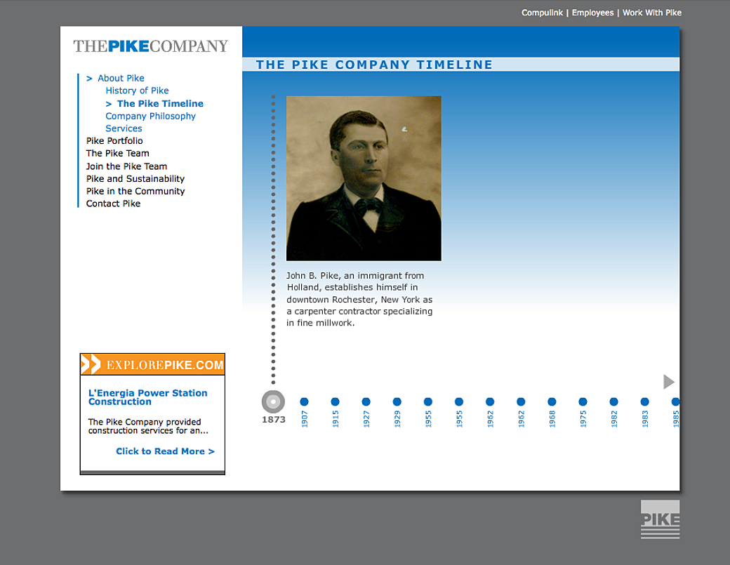 We had a long relationship with The PIKE Company and we were heavily involved in several redesigns of their website. The first one we worked on was mostly developed by Wayne and I don't think I was involved in the initial release of the website. I think it was a little later on when they wanted to add an interactive timeline that showed the history of the company.