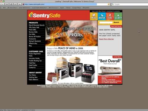 One of the first projects I worked on at Dixon Schwabl was to add a homepage animation and a video player to the SentrySafe corporate website. The homepage video was an animation that promoted their document safes that were pitched as being the ideal place to store electronic media (CDs, flash drives, etc).